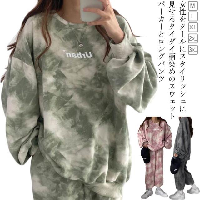 レディース 上下セット セットアップ 染め スウェットパンツ タイダイ柄 スウェットトレーナー スウェットパーカー 春 秋 冬 ルームウェア ビッグシルエット スポーツウェア ロングパンツ ストレッチ ジャージ ダンス衣装 寝巻き スウェットパンツ ホワイトデー 送料無料