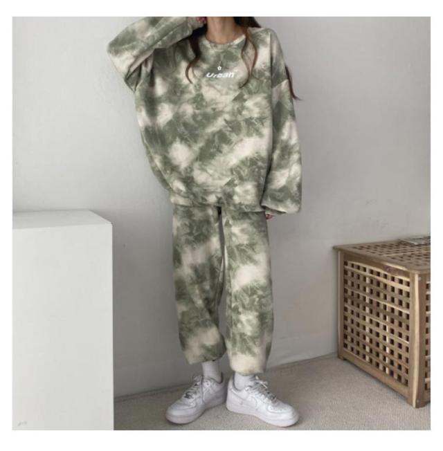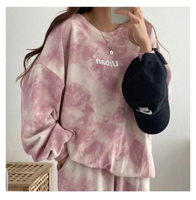 長袖 セットアップ 上下セット ストレッチ 染め ダンス衣装 タイダイ柄 スウェットトレーナー 春 秋 冬 レディース ルームウェア ロングパンツ ビッグシルエット スウェットパーカー ジャージ スウェットパンツ 寝巻き スポーツウェア ホワイトデー 送料無料
