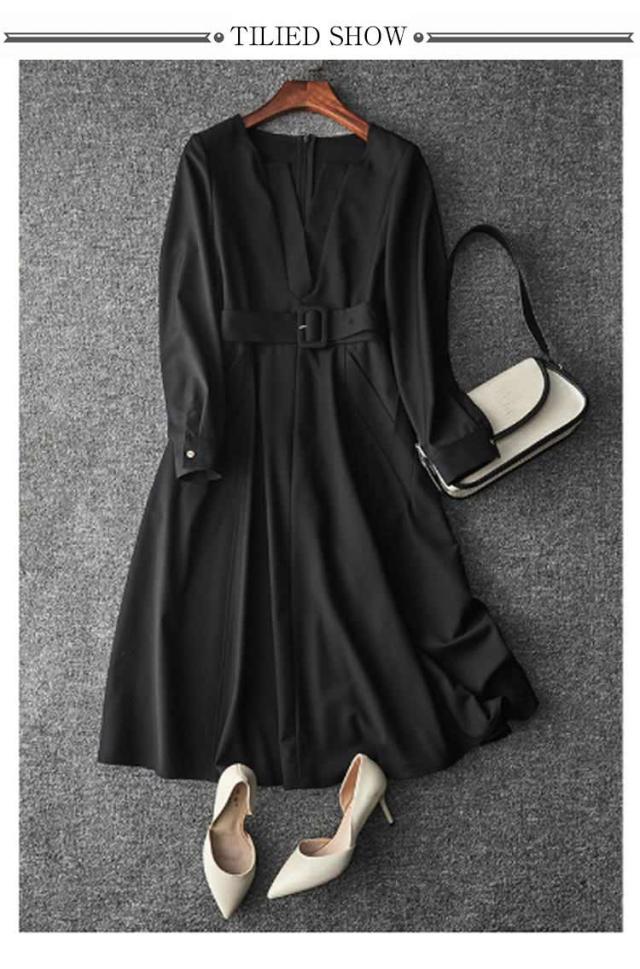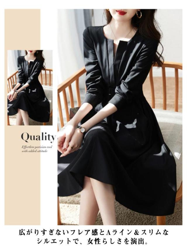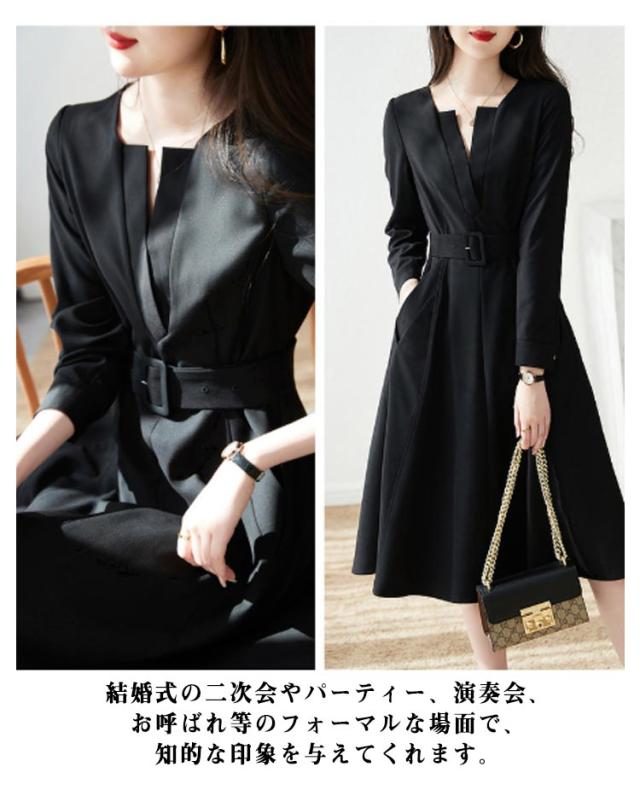 | 誰でもかんたんに着痩せできるワンピースドレス。 立体裁断により、メリハリのあるシルエットをメイク。 顔周りをすっきりみせてくれるVネックデザインが特徴的。 広がりすぎないフレア感とAライン&スリムなシルエットで、女性らしさを演出。 結婚式の二次会やパーティー、演奏会、お呼ばれ等のフォーマルな場面で、知的な印象を与えてくれます。 秋、冬の寒い時期には、上にジャケットやコートを着たり、春、夏には1枚でコーディネートが完成する長袖ワンピース。 普段使いはもちろん、冠婚葬祭も大活躍、1枚あるとあらゆる場面で対応! | |