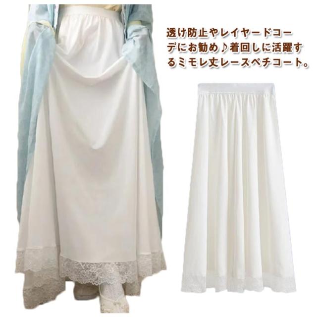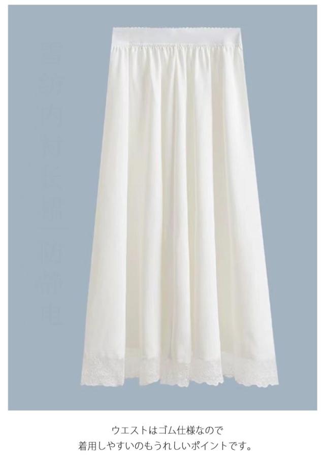 ペチスカート インナースカート 裾 フリルスカート マキシ丈 ペチコート レース 見せ スカート おしゃれ 透け防止 アンダースカート インナー 白 ホワイト 体型カバー 重ね着 インナー ペチスカート ペチコート 裾レース付き 20代 30代 40代 50代 春夏