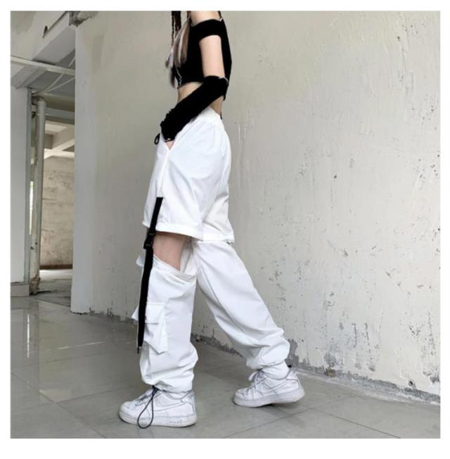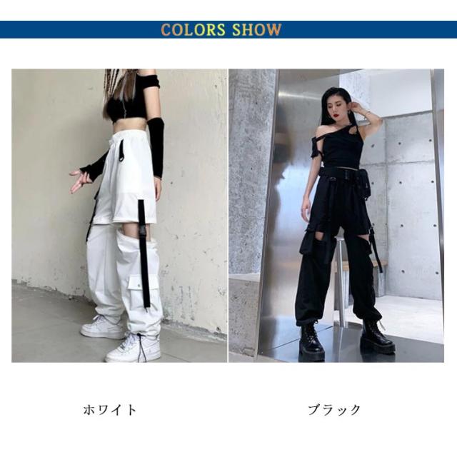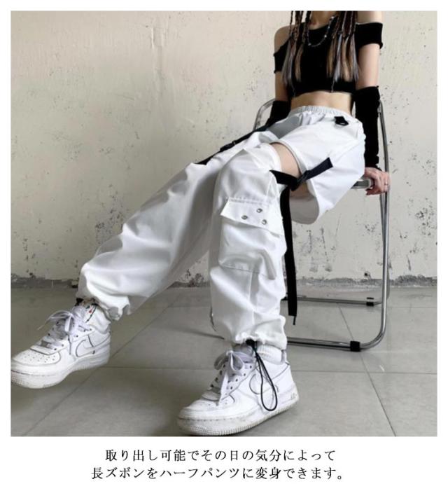 カーゴパンツ ロングパンツ 団体服 2WAY 取り外し可 ダンスパンツ カッコイイ ショートパンツ ダンス衣装 2WAY イベント 原宿系 ストリート 白 レディース 大きいサイズ 美脚 着?せ 演出服 ホワイト 送料無料