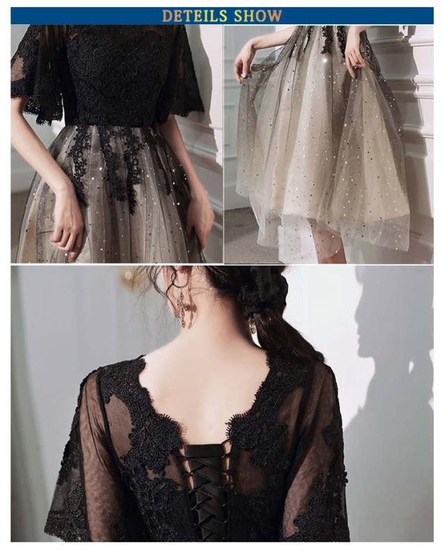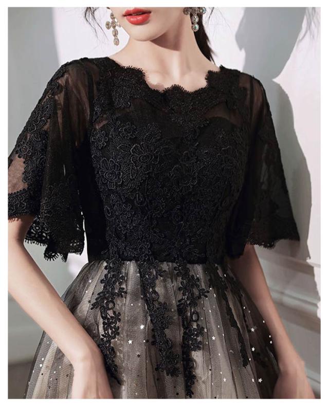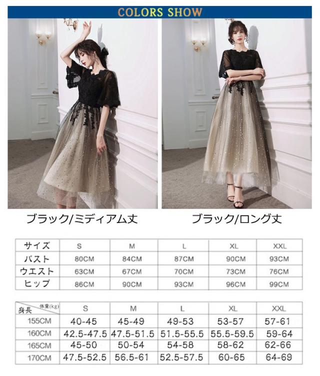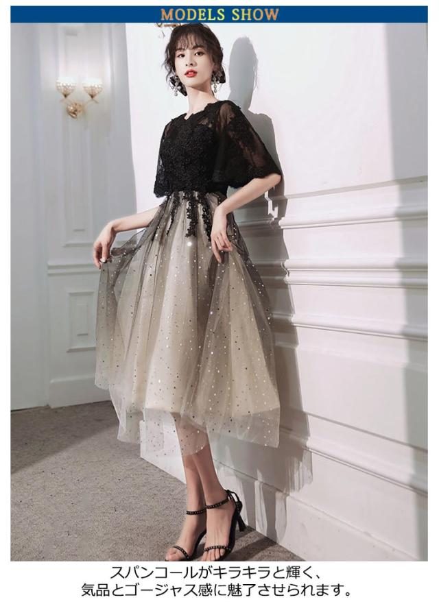 | 選べる丈感、ゴージャス感のあるパーティードレス スパンコールがキラキラと輝く、気品とゴージャス感に魅了させられます。 後ろが編み上げになっていて、サイズ自由に調節します。 シースルーレース地に優雅な花柄レースを施されて、華やかさをより、一層引き立て、上品な印象と共に優美なイメージあります。 また、さらっとした生地なので着心地も抜群!長時間の着用でもストレスフリーです♪ 袖付きなのでボレロなしでも着れるのも嬉しいポイント◎ 結婚式・謝恩会・同窓会等のパーティに一着は持っておきたいドレスです。 | |