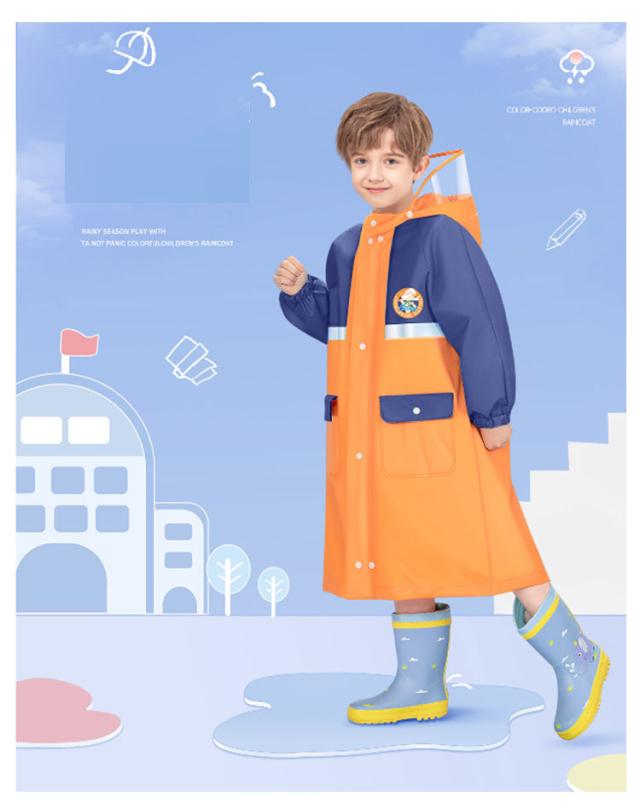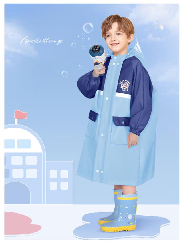 | ランドセルが背負える子供用レインコート 胸元のロゴと配色のデザインがアクセントに | |