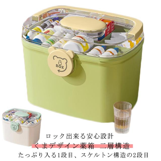 救急箱 2段収納 おしゃれ コンパクト 2段 小物入れ 収納 ケース 大容量 薬 薬ケース くすり箱 くま 救急箱 収納BOX 収納ケース 携帯 小物ケース ボックス かわいい インテリア 工具箱 大きい サプリメント ツールボックス 裁縫箱
