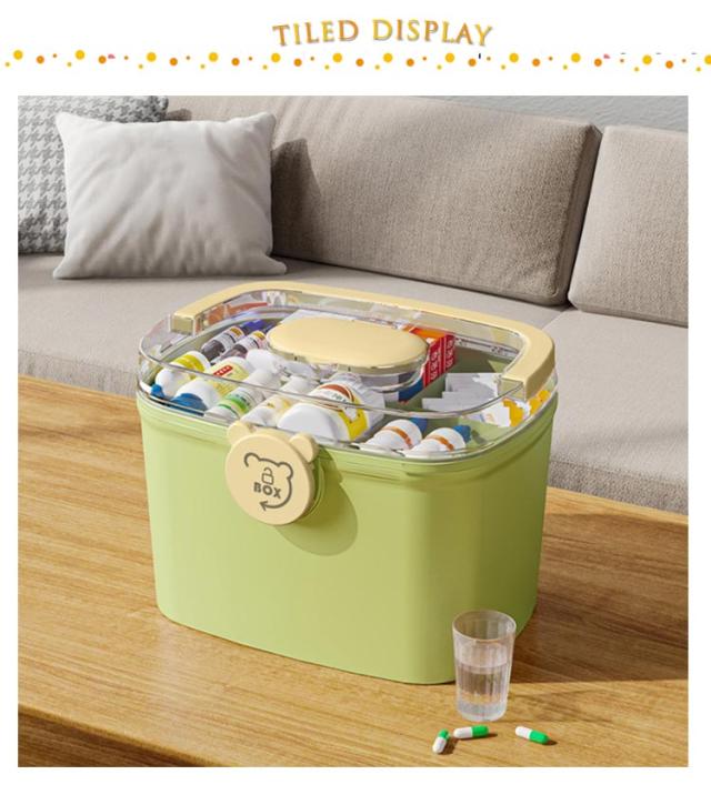 | くまデザイン薬箱 二層構造 ロック出来る安心設計 たっぷり入る1段目、スケルトン構造の2段目 持ち手付き | |
