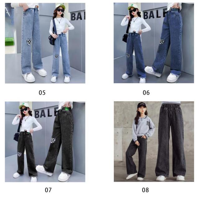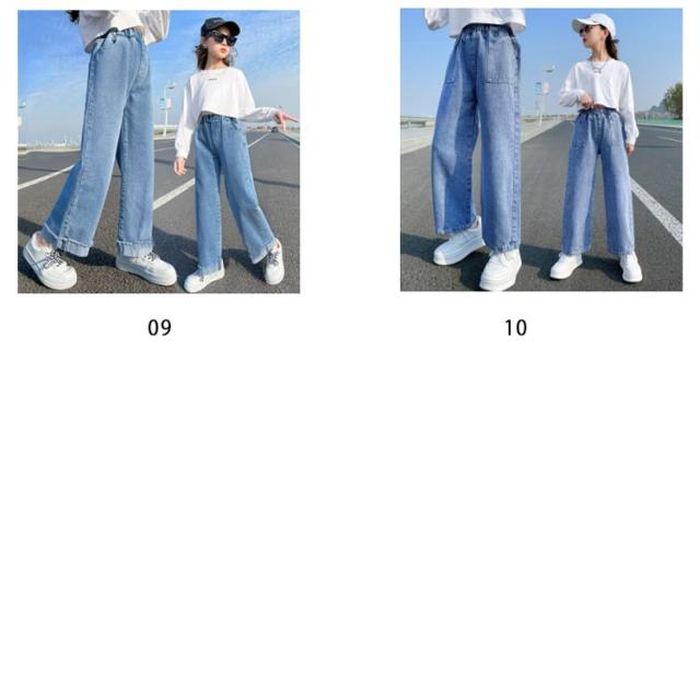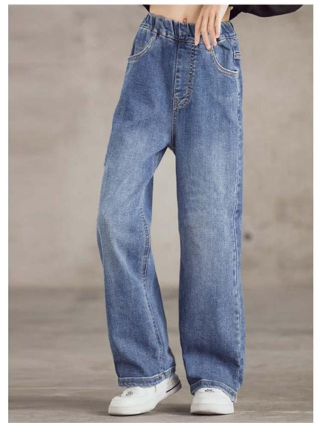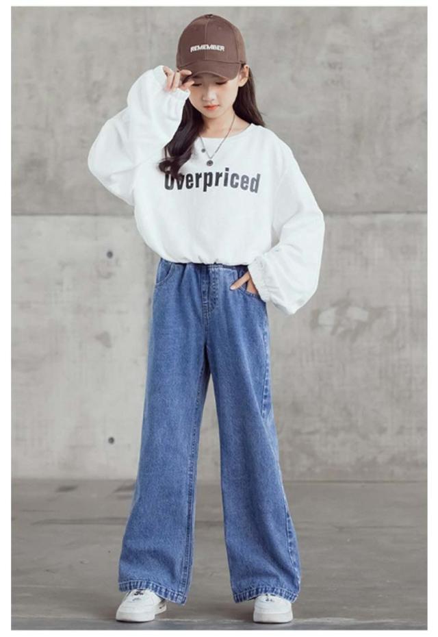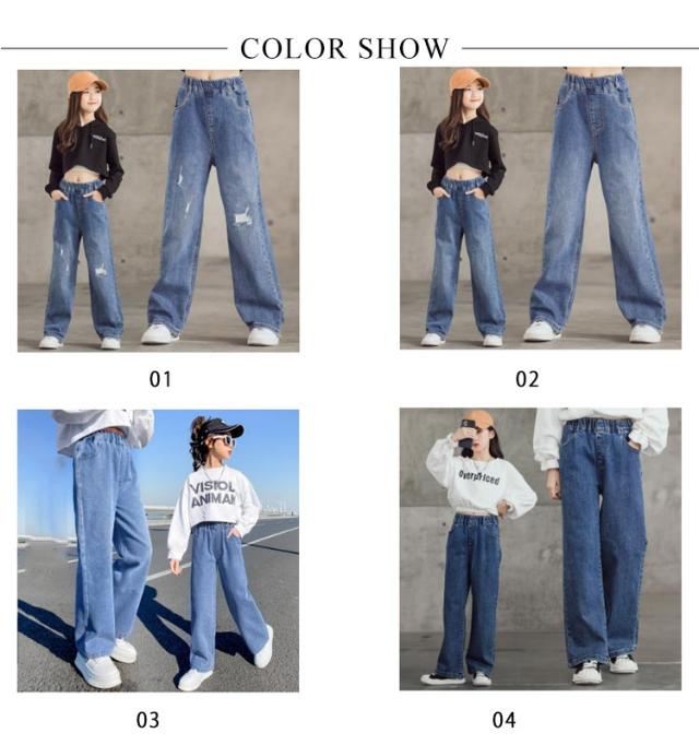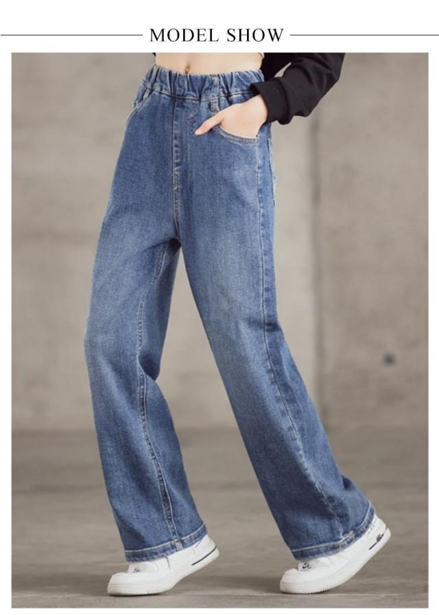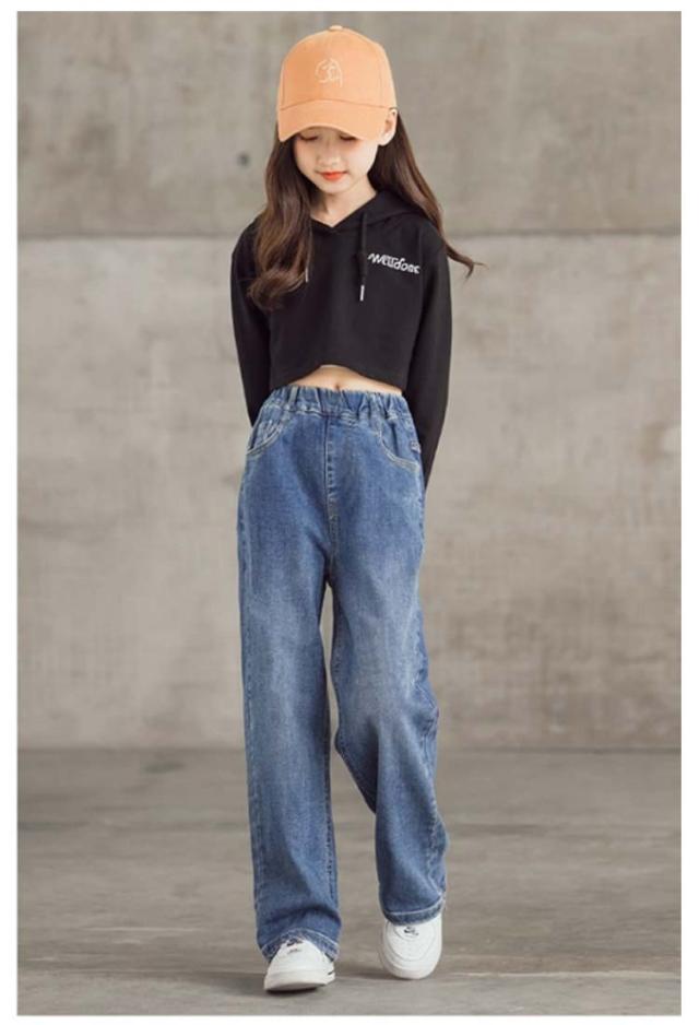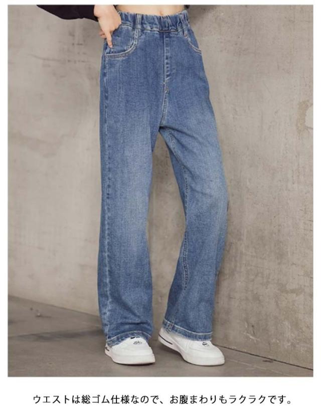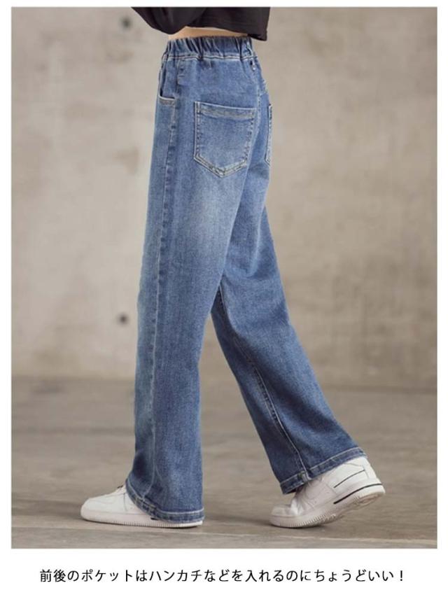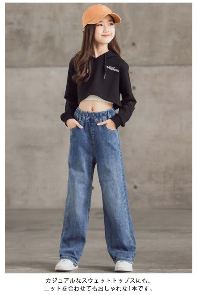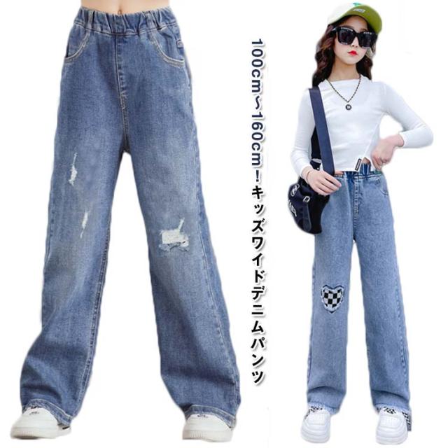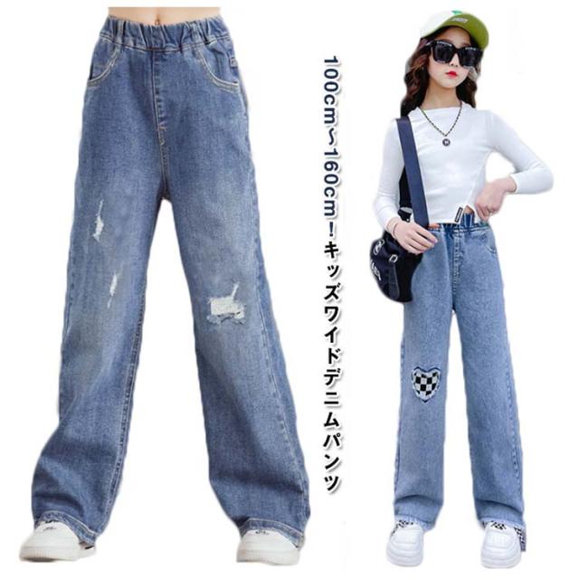 送料無料 ワイドパンツ 長ズボン デニムパンツ 韓国子供服 キッズ ジュニア ウエストゴム ジーパン 130 ダメージ 女の子 衣装 ロングパンツ ジーンズ ダンス 中学生 小学生 子供用パンツ おしゃれ 春 秋 冬 100 110 120 140 送料無料 150