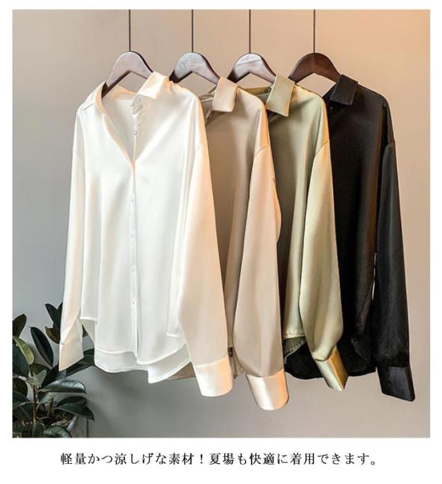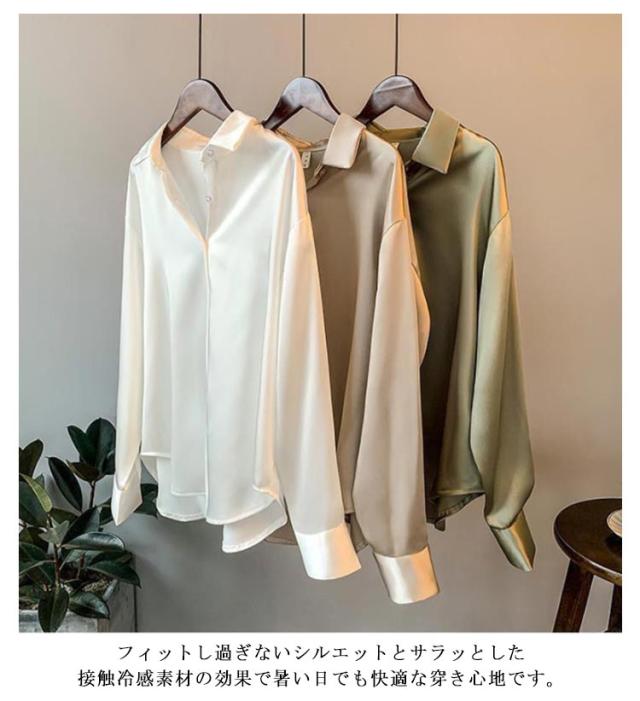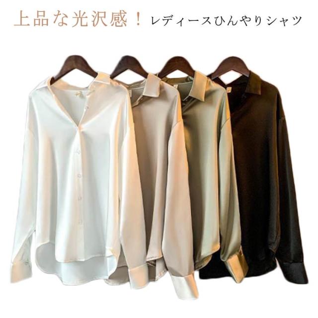 S シャツ 大人 レディース ひんやり ワイシャツ OL 爽やか オフィス 無地 ビジネス 長袖 女性 フォーマル 羽織 きれいめ シンプル 春夏 春 夏 光沢感 体型カバー M L 通勤 光沢感 トップス シンプル 重ね着 送料無料