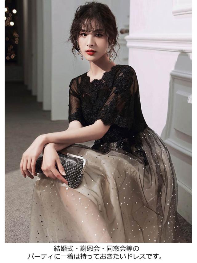 カクテルドレス ワンピース ドレス 大人 ロングドレス 大きいサイズ 高校生 発表会 ドレス レディース 大人 パーティードレス 結婚式 演奏会ドレス マキシ丈 膝丈 ジュニア 韓国風 ピアノ発表会 二次会 袖あり 透け感 送料無料 ギフト