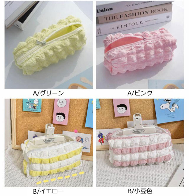 | トレンドのポップコーンのような生地感がおしゃれなペンケース ふわふわ立体の泡のようなバブルワッフルデザインがキュートでおしゃれ! 春夏にぴったりなパステルカラー展開。 ペンなどの文房具やメイクブラシなど収納できます。 | |