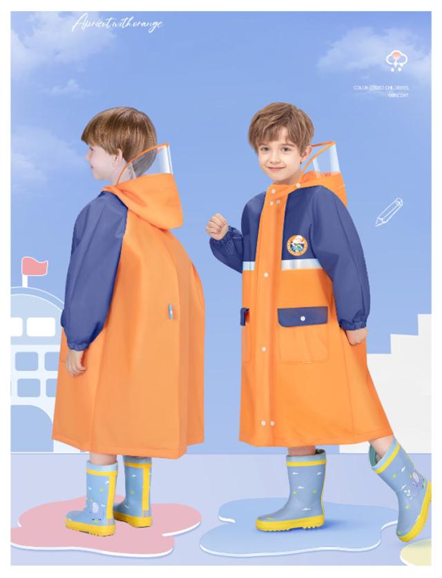 | ランドセルが背負える子供用レインコート 胸元のロゴと配色のデザインがアクセントに | |
