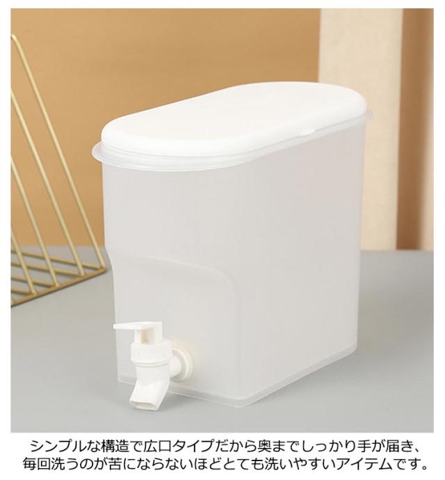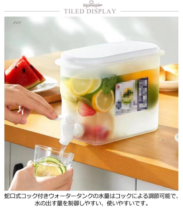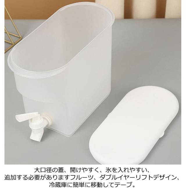 | 一人暮らし 3.5L シンプルな構造で広口タイプだから奥までしっかり手が届き、毎回洗うのが苦にならないほどとても洗いやすいアイテムです。 蛇口式コック付きウォータータンクの水量はコックによる調節可能で、水の出す量を制御しやすい、使いやすいです。 大口径の蓋、開けやすく、氷を入れやすい、追加する必要がありますフルーツ、ダブルイヤーリフトデザイン、冷蔵庫に簡単に移動してテーブ 最高のPP素材であるため、落下の心配がなく、沸騰したお湯を直接注ぐことができます。 掃除が簡単で大容量、上部に蓋があり、新鮮さを保つために密閉され、蛇口が装備されており、便利で実用的です。 | |