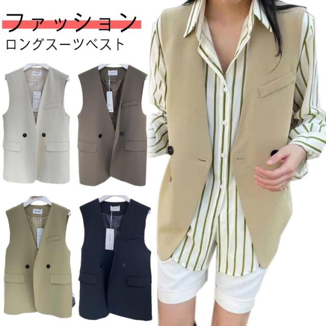 無地 レディース ベスト 日常 ロングジレ スーツベスト おしゃれ 送料無料 ノースリーブ 前開き カジュアル スリット 通勤 ロングスーツベスト 袖なしトップス 無地 春夏秋 ジレ 送料無料 ミドル丈 ノーカラー 薄手 アウター 着痩せ エレガント 制服 オフィス