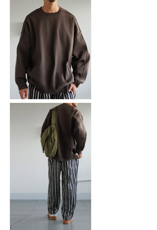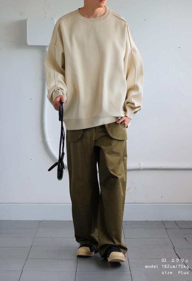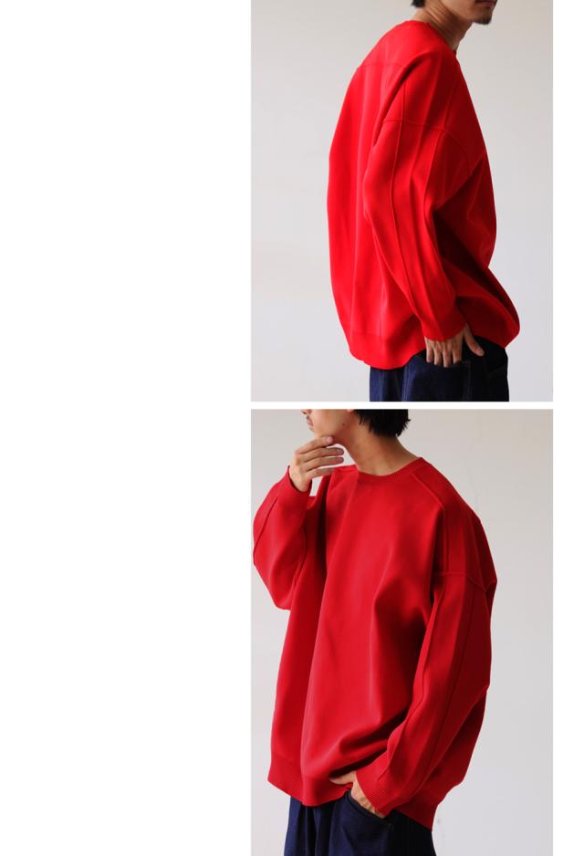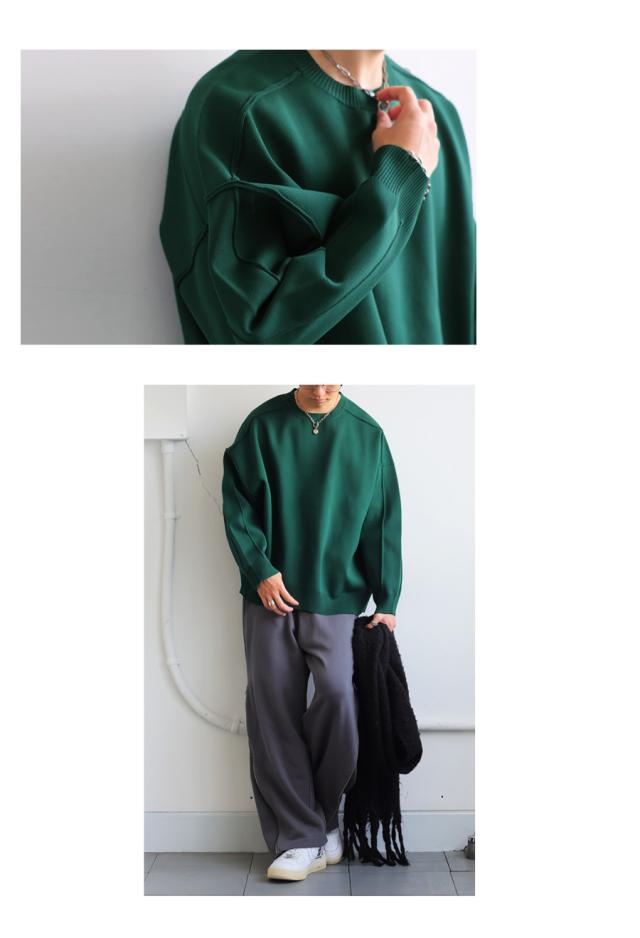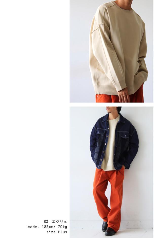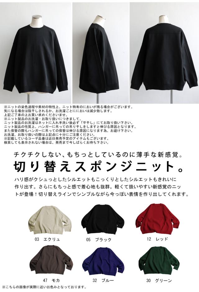 切り替えラインが今っぽい表情を作り出してくれる、新感覚のスポンジニット。