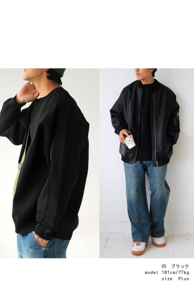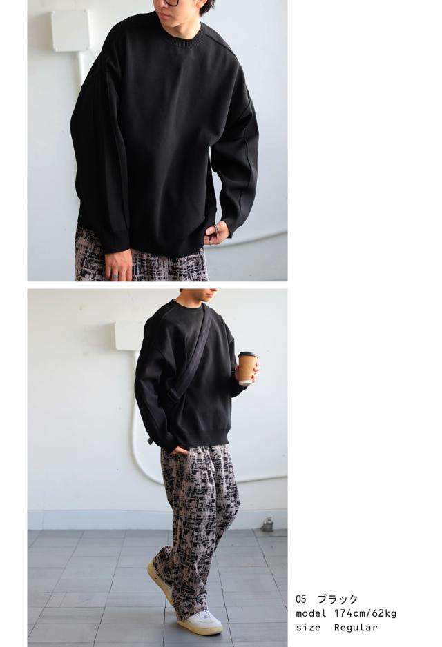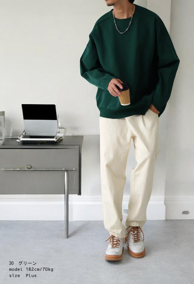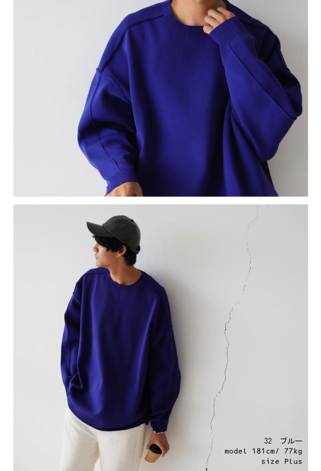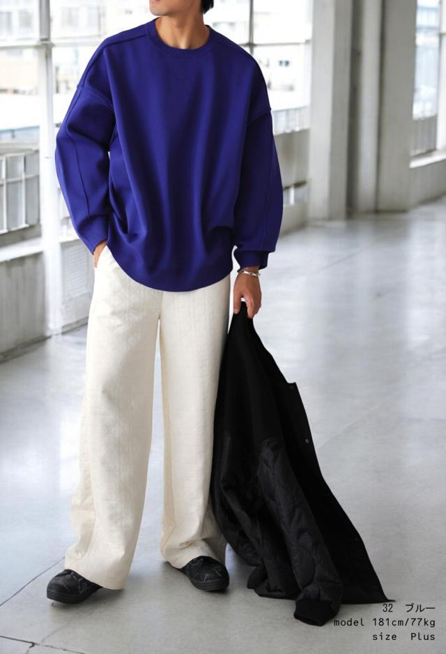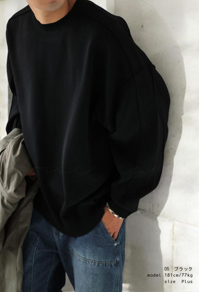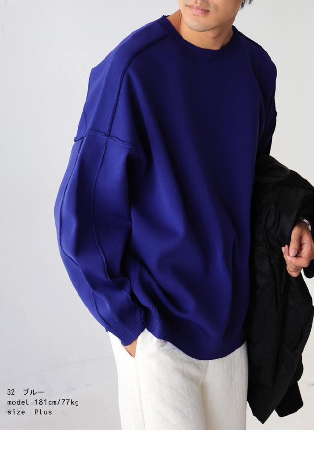 za-00214z プルオーバー 長袖 無地 丸首 クルーネック リブ スポンジニット ゆったり サイズ展開 シンプル きれいめ 上品 伸縮性 ストレッチ 体型カバー 細見え 大きめ ユニセックス