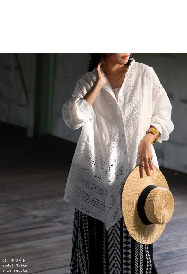 【検索ワード】インド綿 エンブロイダリーシャツ シャツ レディース 長袖 羽織り 綿100 スタンドネック バンドカラー スタンドカラー 透け スケルトン シースルー レース シアー エンブロイダリー 刺繍 刺繍柄 柄シャツ 前開き シェルボタン アシメ アシンメトリー 変形 レイヤード 重ね着 ゆったり サイズ展開 Regular Plus ナチュラル 高級感 綿 コットン デザインシャツ 大きめ 大きいサイズ レースシャツ ブラウス antiqua mulumulu アンティカ ムルムル 大人 おしゃれ 10代 20代 30代 40代 50代 60代 春 夏 お洒落 カジュアル かわいい かっこいい あんてぃか インド製 ジャイプール 繊細 手仕事 職人技