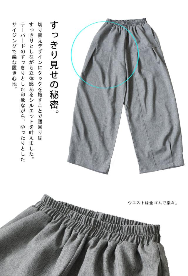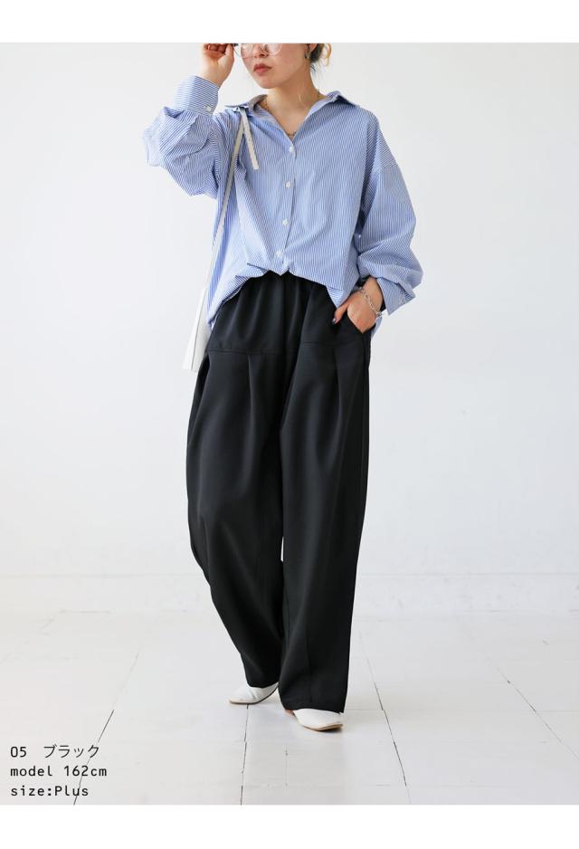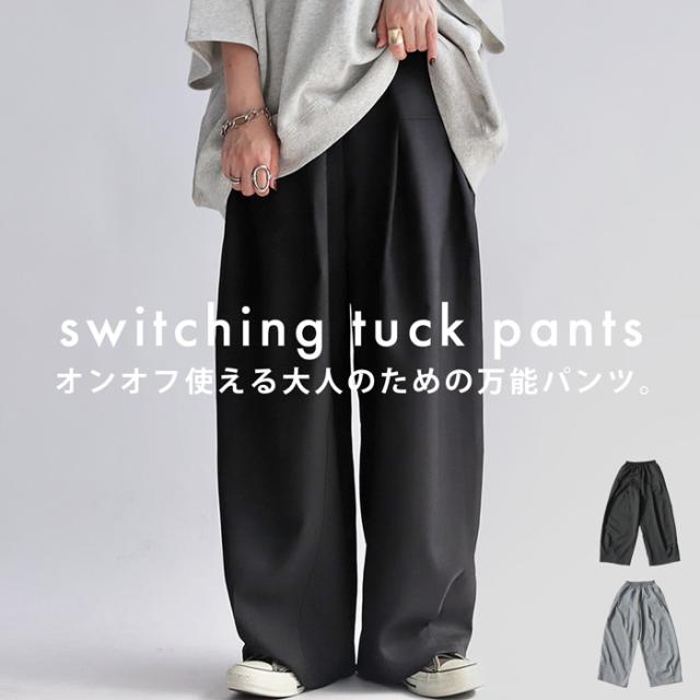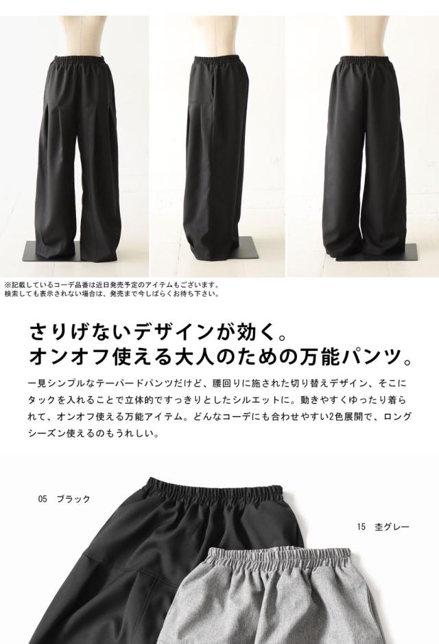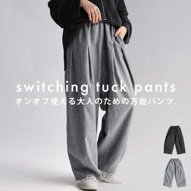 pa-03630 無地 切り替え 切替 タック 切り替えパンツ テーパード ワイドパンツ ギャザー ウエストゴム ゆったり サイズ展開 シンプル きれいめ 上品 モード 大きめ 長ズボン
