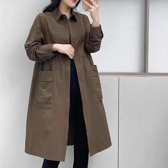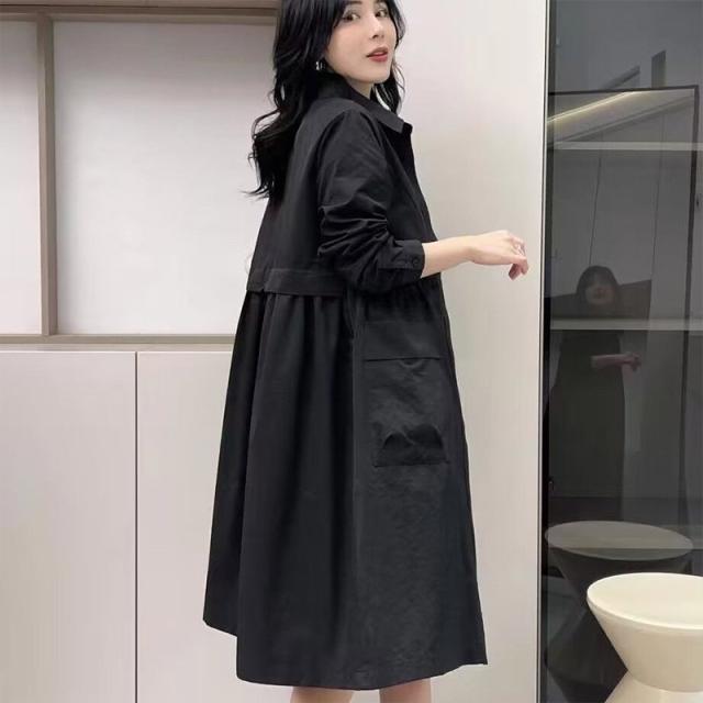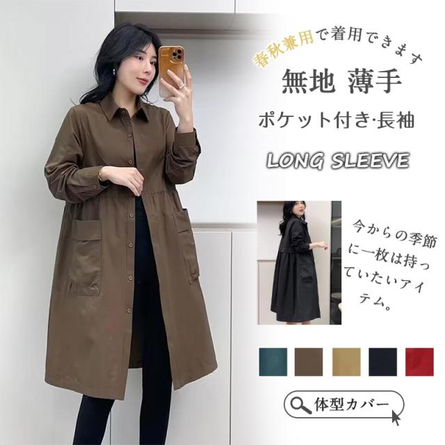 春夏新作 トレンチコート レディース スプリングコート 春アウター 無地 薄手 ロング丈 カジュアル ゆったり 秋コーデ 秋服 春秋 ボタンダウン