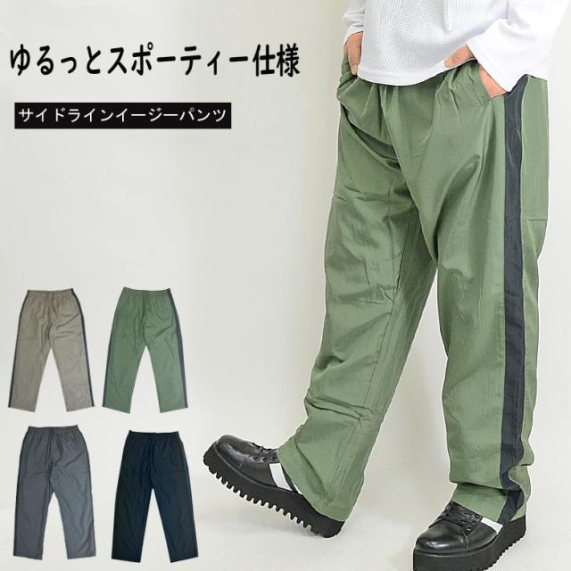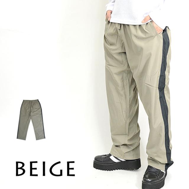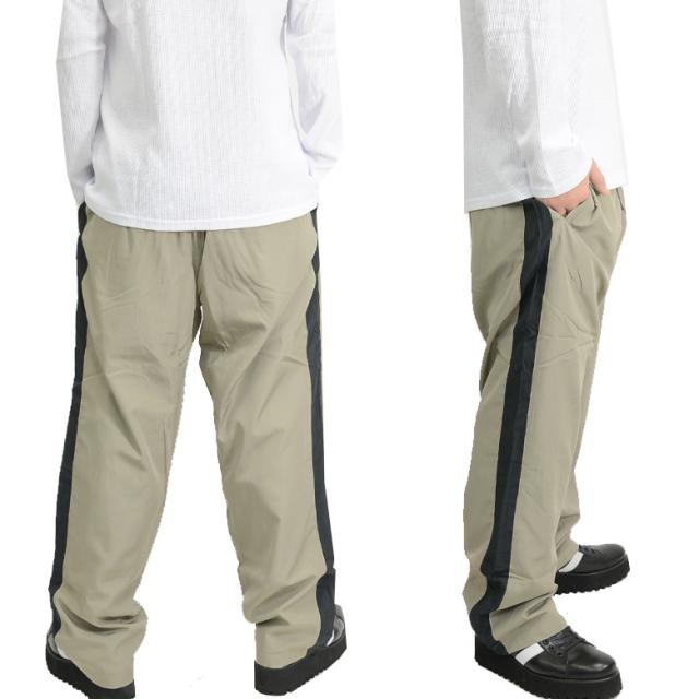 【閉店セール】サイドライン ポリ素材ワイドイージーパンツ 28861 メンズ トリコット裏地 パンツ 無地イージーパンツ ナイロン系パンツ ルームウェア ワンマイルウェア メンズ パンツ メンズパン ルームウェア ベージュ カーキ