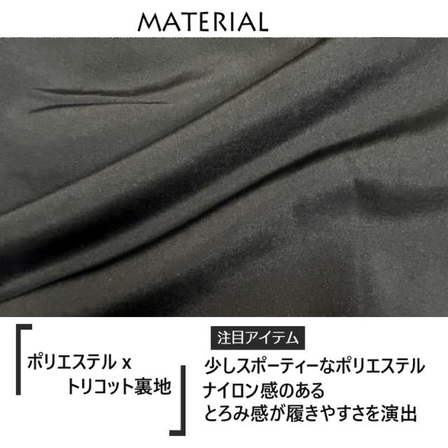 生地はナイロン系ポリエステル、肌触りがいいトリコット裏地を使用しています。