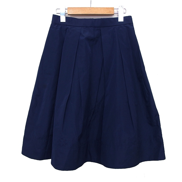 【中古】ストロベリーフィールズ STRAWBERRY-FIELDS フレア スカート 膝下 無地 シンプル タック 綿混 1 ネイビー 紺