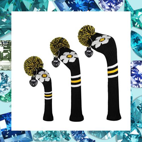 濃い色明るい色のストライプゴルフのニットヘッドカバー 、3枚セット 、ドライバー、フェアウェイウッドとハイブリッドut (ひな菊)