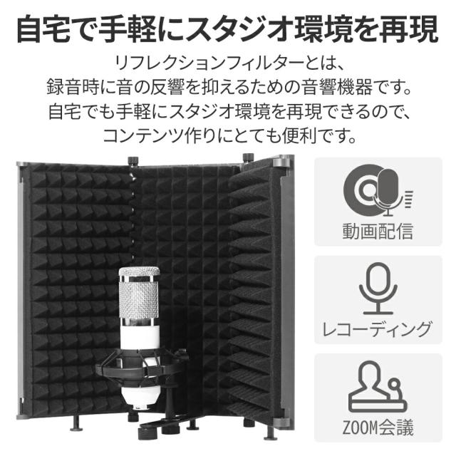 リフレクションフィルター 防音 吸音 防音材 吸音材 マイク 録音 音楽 歌声 レコーディング 卓上 スタンド 折りたたみ ノイズ軽減 ノイズ 反射音 収納 持ち運び ラジオ 放送 ボーカル シールド 202303SS