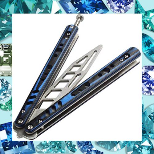 XUANDONG バタフライナイフ トレーニング用 刃なし 折りたたみ式 サバイバルゲーム用品 G10ハンドル 蝶ナイフ 初心者 チョウ 練習刀 (青)