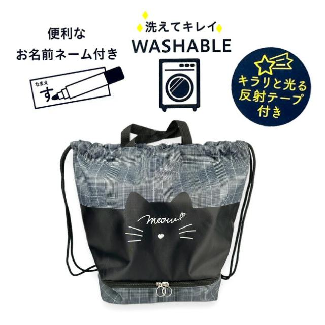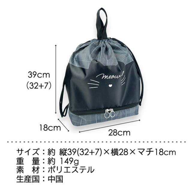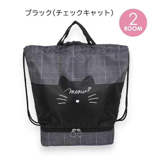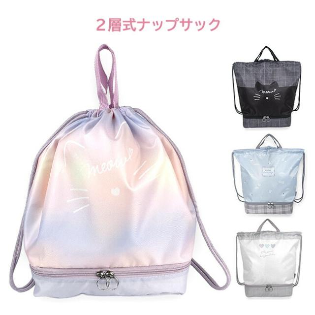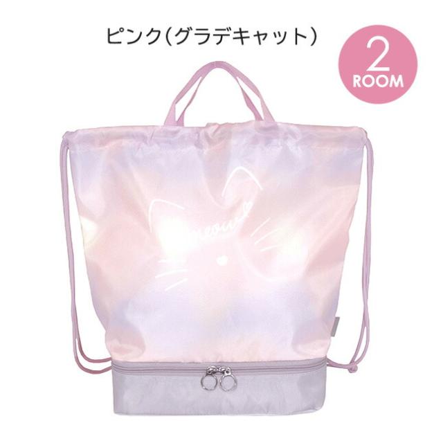 ナップサック 女の子 75082 チェックキャット グラデキャット シマエナガ ハート 2層ナップサック おしゃれ かわいい こども 女子 ガールズ 低学年 高学年 小学生 体操服入れ 体操着入れ 体操着袋 着替え入れ 巾着袋 入園グッズ 入学グッズ 幼稚園 保育園 こども園 小学校