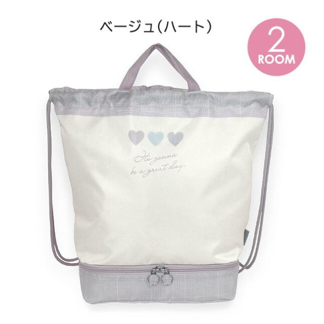 ランドセルの上から背負える、2層式の使い勝手の良いナップサック。