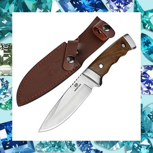 【フルタング構造】シースナイフのブレードを挟み込んだ堅牢なフルタング構造で、グリップ材質は天然ウッド材で手に優しくて、質感があります。ブレード背中に滑り止めの角度をデザインしています。