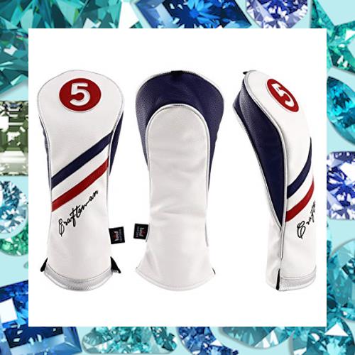 CRAFTSMAN(クラフトマン)ゴルフフェアウェイウッド用 #5 FW クラブヘッドカバー 三片式シンプルな設計 合成皮革 白青赤 単品