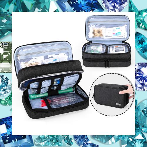 大容量:第一層にある3つのジッパー式ポケットには血糖値測定器、穿刺具、センサーなどの血糖値測定用品を収納することができます。第二層にある2つのメッシュポケットには保冷剤を入れて、付属の折りたたみ式ポーチにはインスリンペン、インスリン注射器、インスリンバイアルなどを収納することができます。