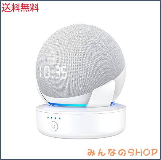【10000mAh大容量】約10,000mAh大容量、Dot 4スピーカーを12時間以上、スタンバイモード:24時間以上充電することができます。スタイリッシュなデザインでスピーカーが新しく見え、内蔵の充電式ドットバッテリーベース、Echo Dot 4スーピーカーの上に嵌め込みデザインではないので、またっく音質にも影響はないです。