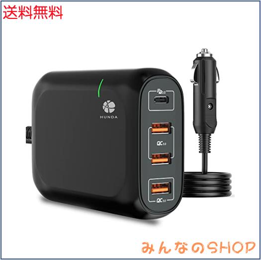 ◆商品名:HUNDA シガーソケット usb カーチャージャー 119W 4ポート【PD3.0 & QC3.0】車載充電器 Type-C 65W 車載急速充電器 (USB-C *1 + USB-A *