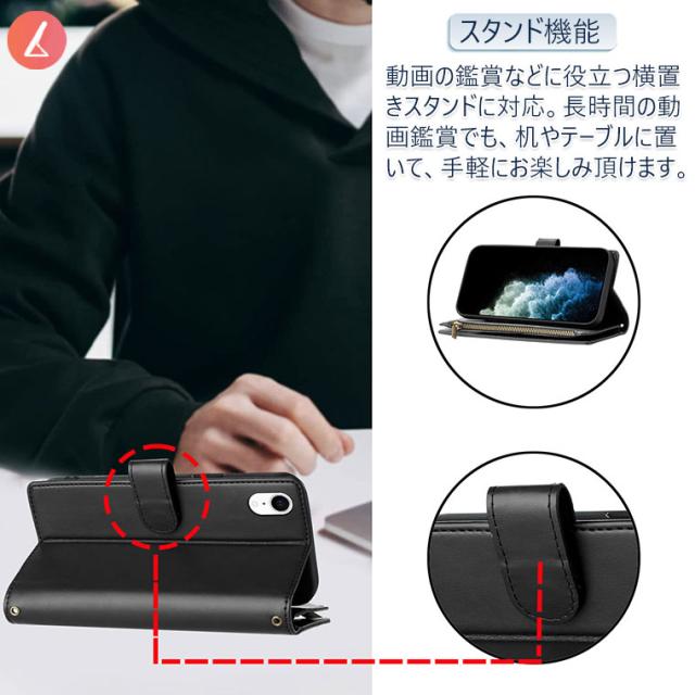 ●財布型ケースとして、名刺やお札などを入れるカードポケットがつき、日常生活に便利です。