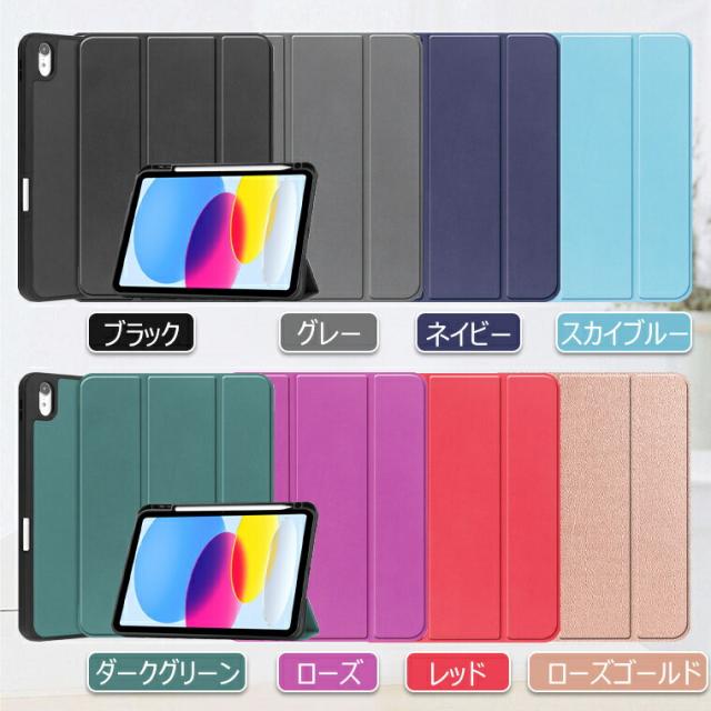 iPad ケース 第10世代 iPad 第10世代 カバー iPad 第10世代 ケース 2022 10.9 三つ折り PUレザー iPad 10世代 カバー ケース 10.9インチ かわいい スタンド機能 オートスリープ機能 耐衝撃 タブレットケース iPadケース 手帳型 薄型 シンプル ペン収納付き