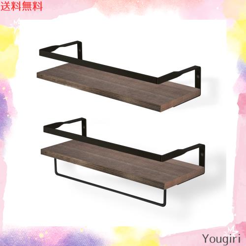 ウォールシェルフ 木製 壁掛け棚 2個セット ドリル不要可能 ウォールシェルフ 取付簡単 調味料ラック 落下防止 飾り棚 壁収納 侘寂風 省