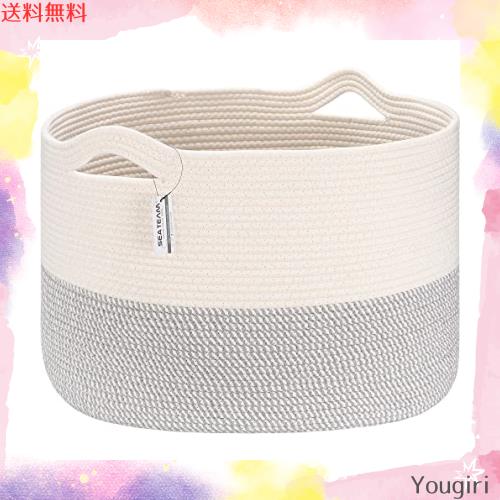 Sea Team 大容量 収納かごバ スケット 持ち手付き ランドリー ランドリーバスケットコットンロープ 収納ボックス 洗濯物 タオル 折りたたみ リビング用 インテリア 収納バスケット おしゃれ 可愛い 混色