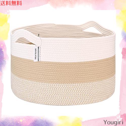 Sea Team 大容量 収納かごバ スケット 持ち手付き ランドリー ランドリーバスケットコットンロープ 収納ボックス 洗濯物 タオル 折りたたみ リビング用 インテリア 収納バスケット おしゃれ 可愛い 混色