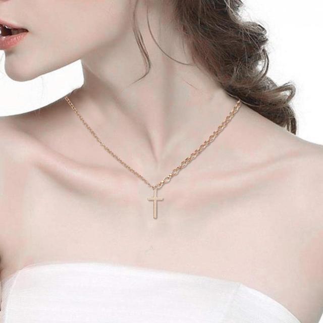 ★ シンプル 十字架 ネックレス ★ ペンダント チェーン ネックレス ジュエリー レディース 可愛い アクセサリー 金 N17-9
