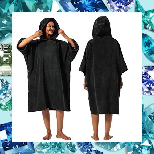 Winthomeお着替えポンチョ タオル サーフィンポンチョ 着替えタオル サウナポンチョ サーフポンチョ 速乾吸水 長袖 防寒 全6色 (ブラック