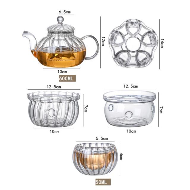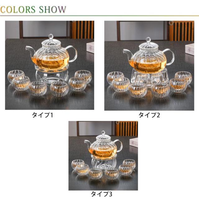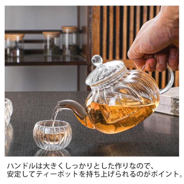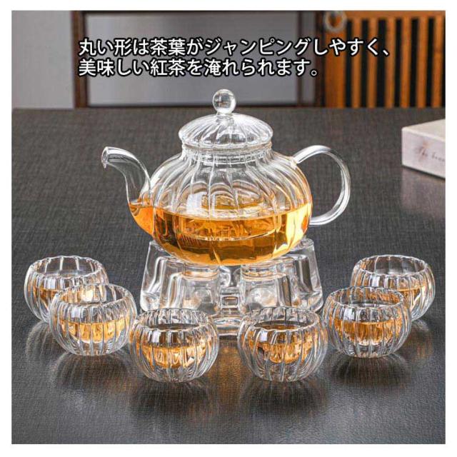 ガラスポット ウォーマー付き 8点セット 直火対応 ティーポット 耐熱ガラス 急須 茶こし付き ティーセット 600ml ガラス 湯呑み ティーフォーツー 紅茶 フルーツティー リーフティー 花茶