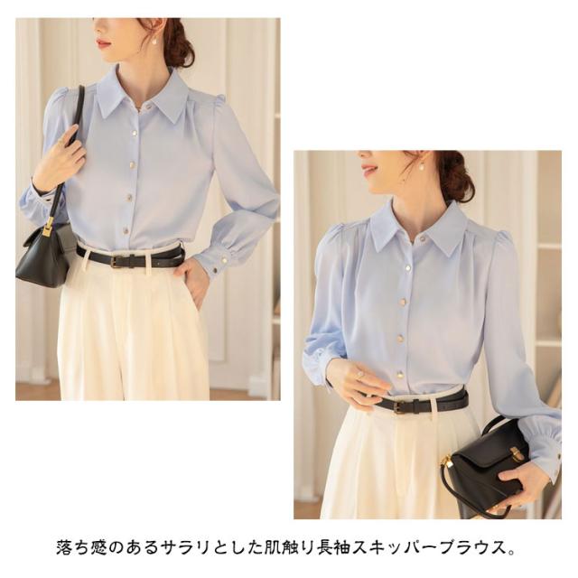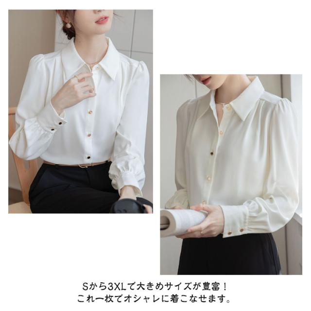 おしゃれ スキッパー ブラウス シワになりにくい 大きいサイズ オフィス 長袖 シフォン 冬 可愛い 春秋 シャツ 前開き OL ワイシャツ 春 トップス きれいめ ゆったり 通学 通勤 事務 フォーマル ビジネス 襟付き ブラウス 大人 女性