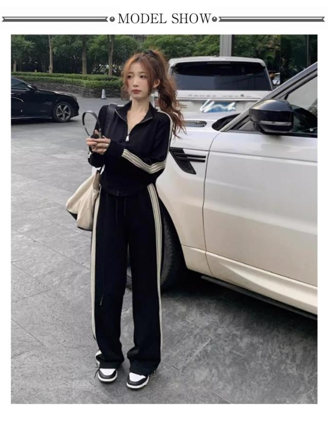 スウェット ジャージ 長袖 セットアップ サイドライン 細身 ジャージ サイドライン 送料無料 韓国 レディース 上下セット ロングパンツ おしゃれ フェミニン ランニングウェア ヨガ ジム 春夏 秋 短め 大人可愛い