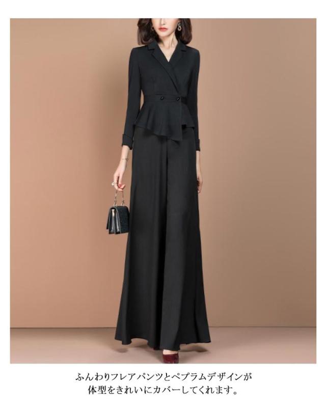 母 パンツスーツ 50代 送料無料 入学式 卒業式 フレアパンツ 2点セット ペプラム ジャケット セットアップ レディース 30代 セレモニースーツ ママスーツ セットアップ フォーマルスーツ ビジネススーツ ミセス 七五三 入園式 卒園式 親族 母親 服装
