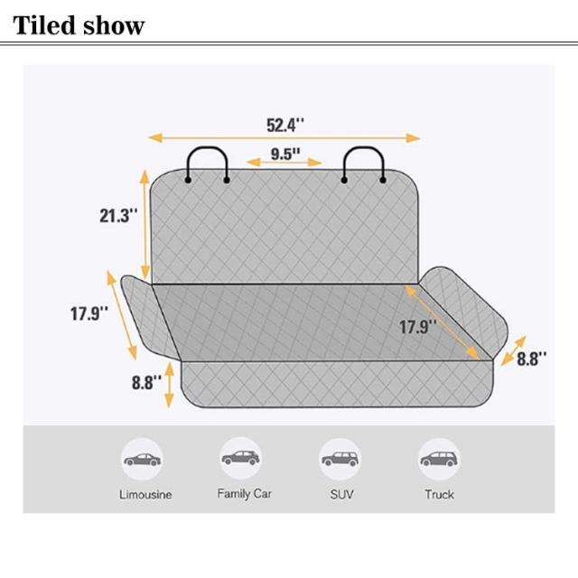 | 【ペット用ドライブシート】【後部座席用】【防水・滑り止め】【137×125cm】 ペットと一緒にドライブ旅行を楽しみましょう。 オックスフォード素材を採用し、生地は厚く、シートをしっかり保護します。 このシートカバーは簡単に簡単に取り付けられます。車の後部座席を全面的に保護できます。 防水設計で、泥、傷、髪の毛による悪い経験を心配することなく、また底面は滑り止めデザインで、シートカバーをきちんと固定でぎます、色褪せもしません。 濡れたタオルで気楽に掃除することもできます、汚れはもうあなたを悩ませる問題ではありません。 | |