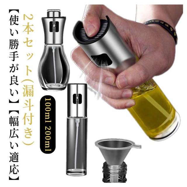 オイルミスト 醤油調味料 料理用 2本セット 200ml オイルスプレー オイルボトル 霧吹き ガラス製 100ml 油 酢適用 オイルスプレー アルコール スプレーボトル キッチン用 クリア ガラスオイルディスペンサー スプレーボトル 漏斗付き バーベキュー用 キャンプ
