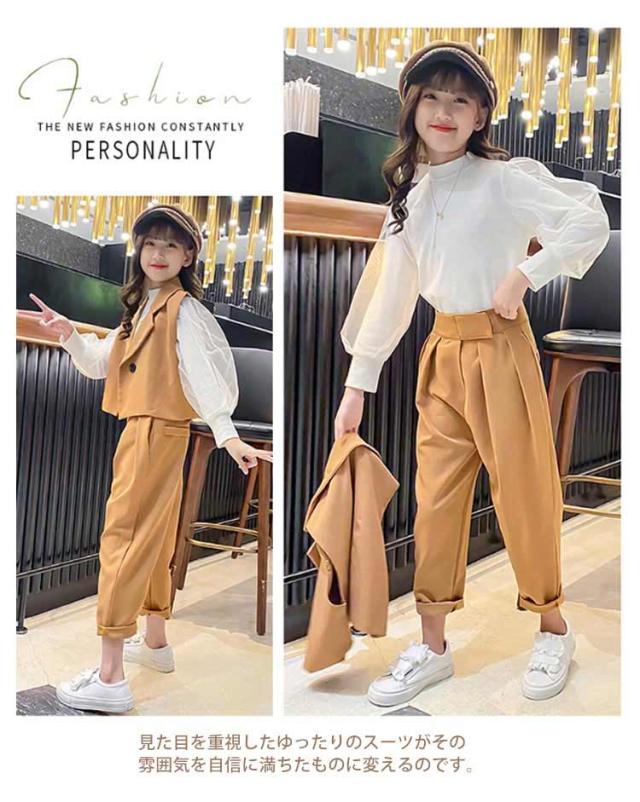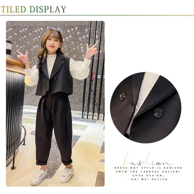 小学生 スーツ 卒業式 女の子 170 スーツ ゆったりサイズ 150 160 結婚式 ジュニア 165 発表会 黒 春秋 セットアップ フォーマル パンツスーツ ブラウス 白シャツ ベスト パンツ おしゃれ 子供服 卒業式 ブラック 大きいサイズ 110 120 130 140 150 160