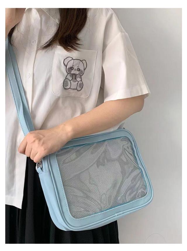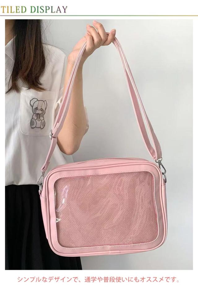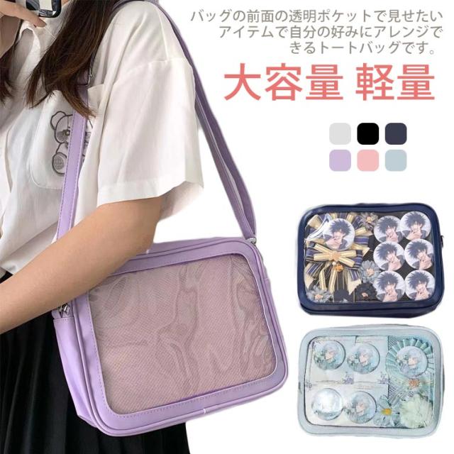通勤 ショルダーバッグ トートバッグ 透明ポケット 見せバッグ 軽量 ブラック ぬいぐるみ 無地 大容量 マルチショルダーバッグ 通学 ワンショルダーバッグ 斜めがけ 痛バッグ 韓国 肩掛けバッグ 痛バッグ レディース ガールズ カバン かわいい