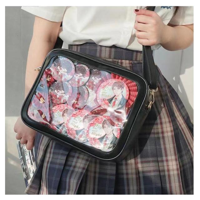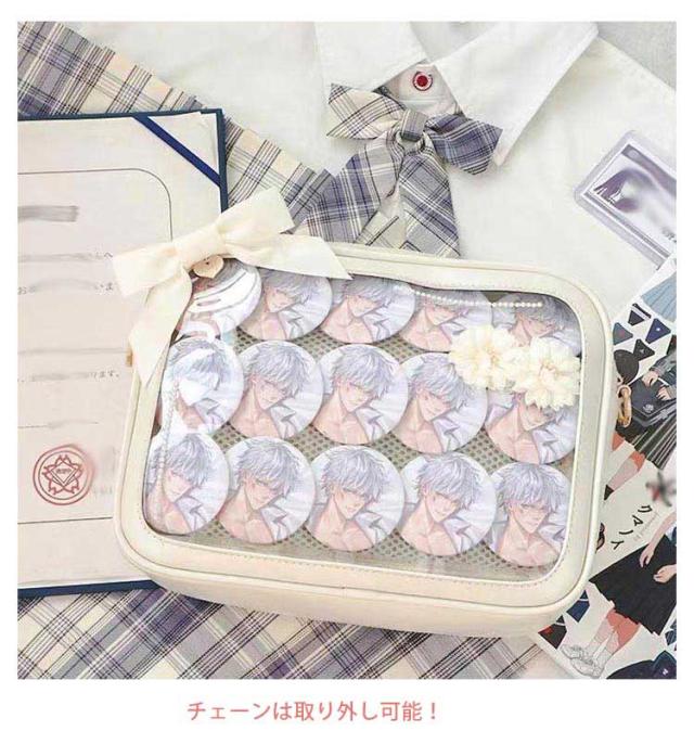 | バッグの前面の透明ポケットで見せたいアイテムで自分の好みにアレンジできるトートバッグです。 好きな芸能人やアニメキャラの写真、缶バッジ、ストラップ、ぬいぐるみ、萌グッズなど入れて一目瞭然です。 チェーンは取り外し可能! シンプルなデザインで、通学や普段使いにもオススメです。 | |